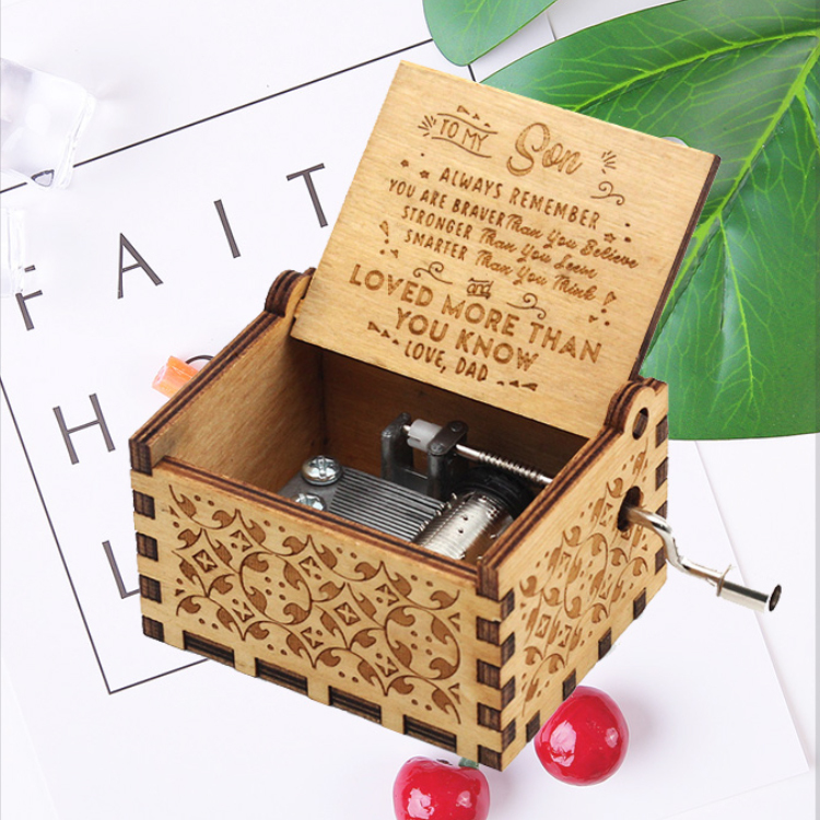 - This is a beautiful wooden music box with a meaningful message engraved from the inside of the box.