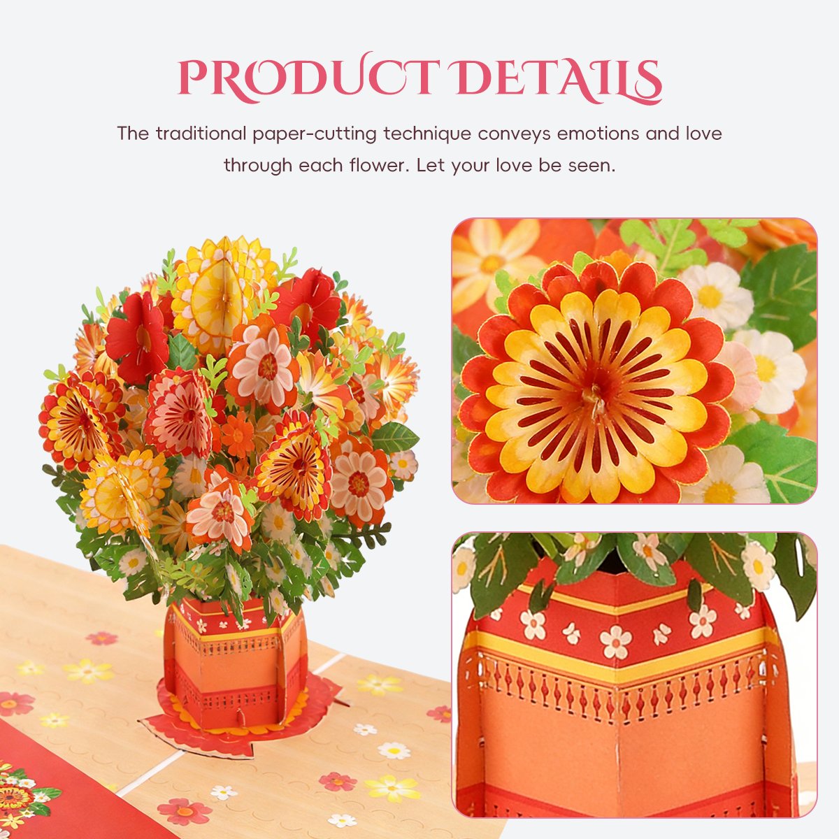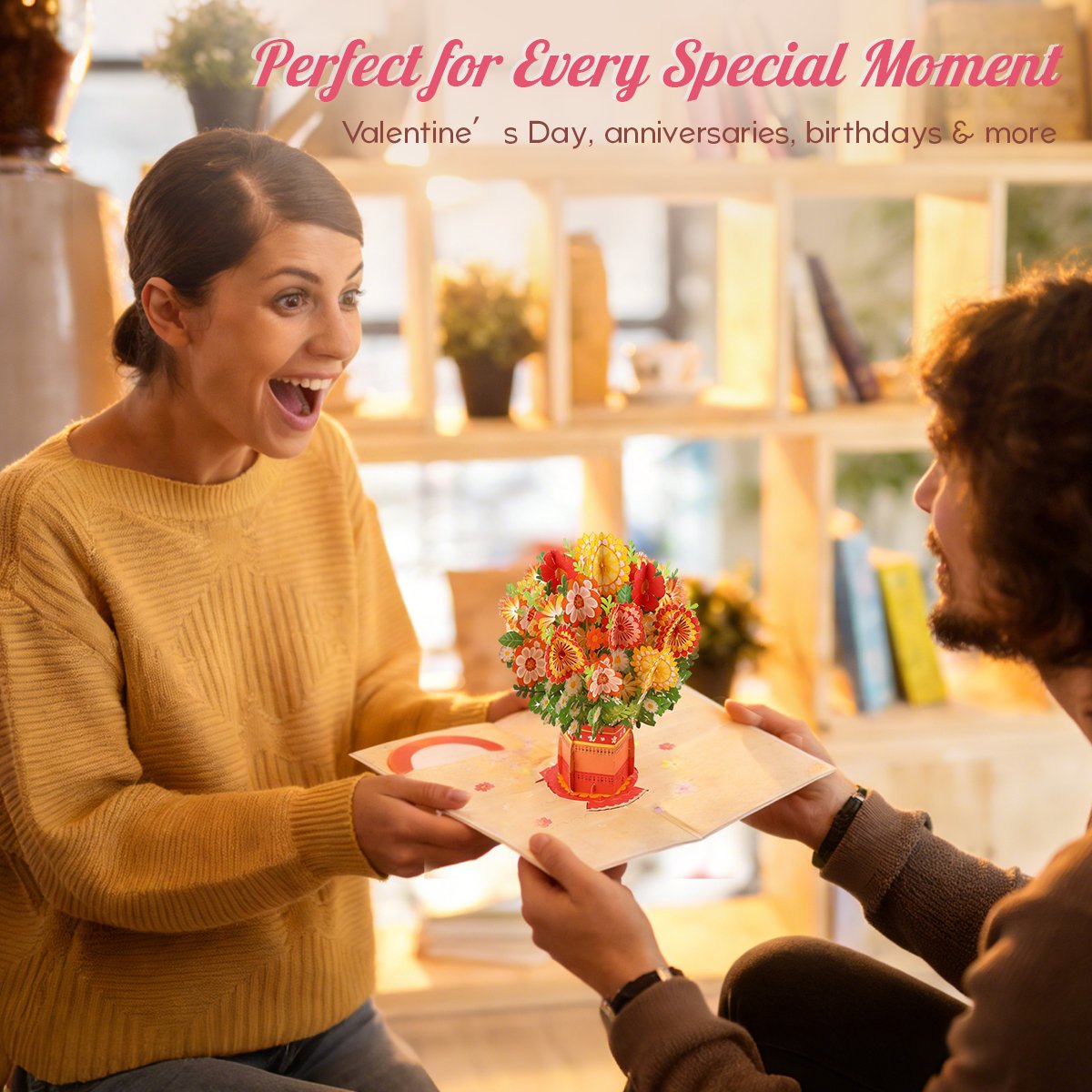 At first glance, it looks like a beautiful Valentine’s card.Then they open it…And a stunning laser-cut 3D flower bouquet blooms before their eyes.